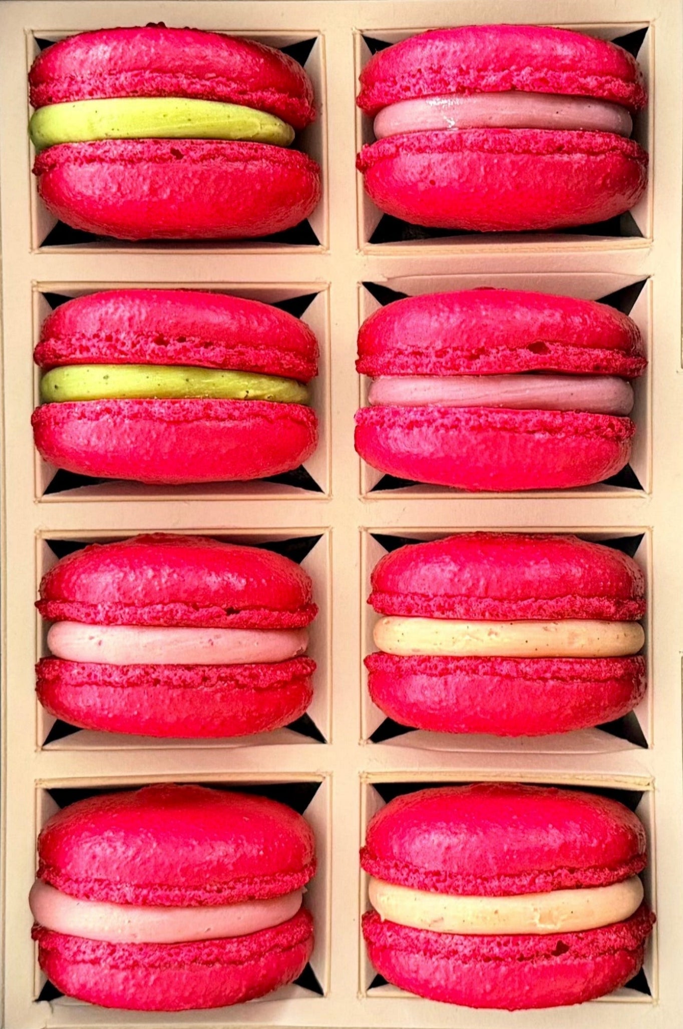 Unsere Macarons werden mit frischen Zutaten und ohne künstliche Konservierungsstoffe liebevoll von Hand hergestellt. Daher sind sie etwa 5 Tage nach Erhalt haltbar – am besten schmecken sie natürlich frisch.